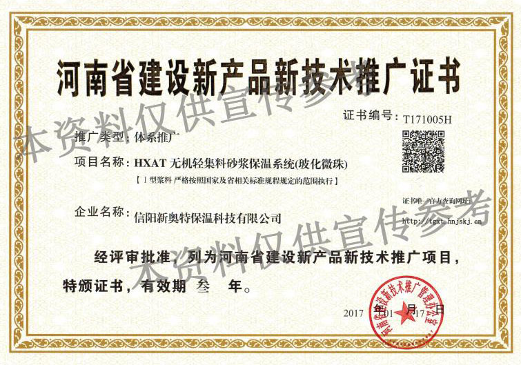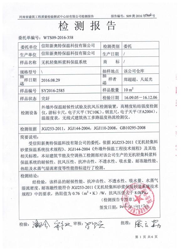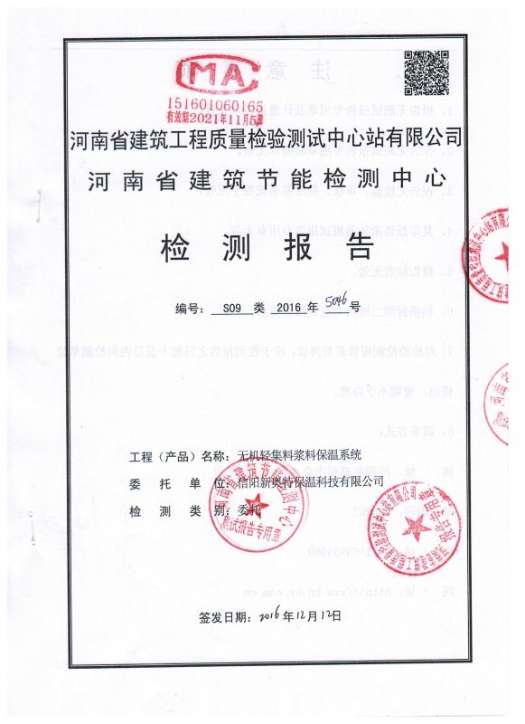 無機保溫砂漿外墻外保溫系統(tǒng):在河南、安微、江蘇、溫州已重點推廣證書并有大量工程工地。是目前中國活性保溫砂漿研究生產(chǎn)的大型工廠。其中技術(shù)研發(fā)人員19名。經(jīng)過國家和多省組委會專家考察、評審、好評一致。產(chǎn)品質(zhì)量達到國家標(biāo)準(zhǔn)水平。