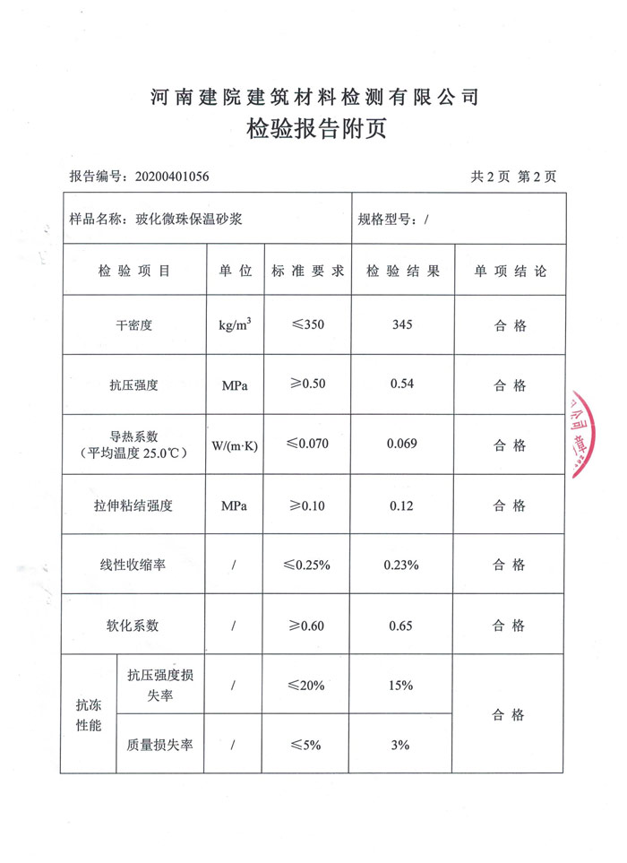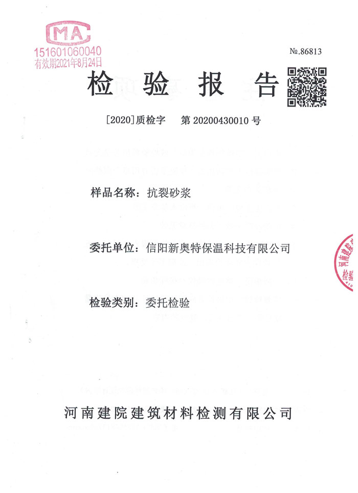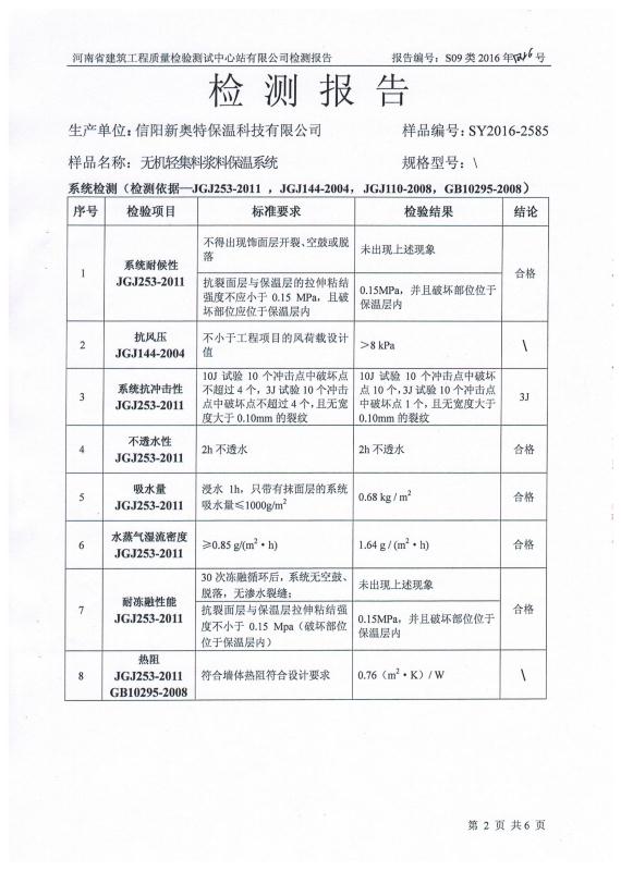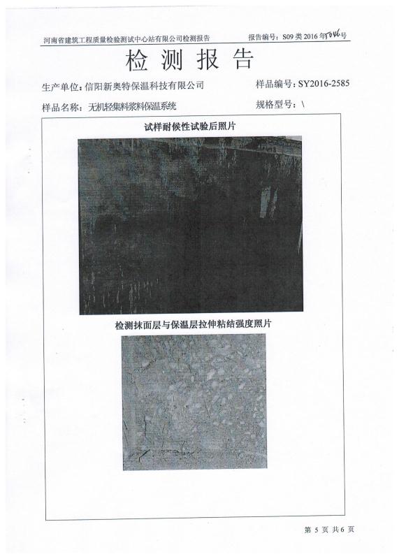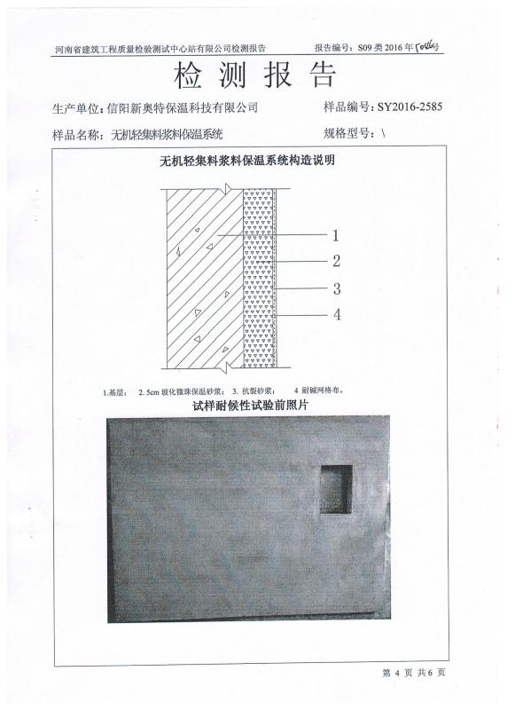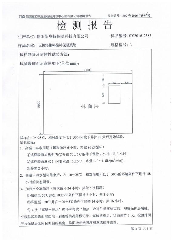 無機保溫砂漿系統(tǒng)耐候性檢測報告