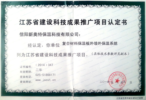 獲得了江蘇省建設廳推廣證書和施工方案: